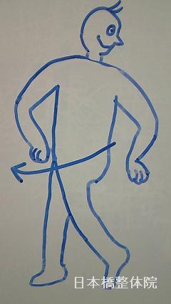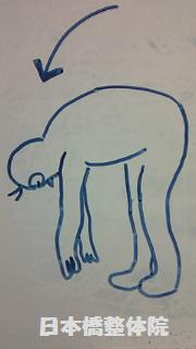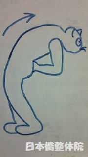 後ろにそると腰が痛む場合は痛くないほう・・・前に曲げます。
