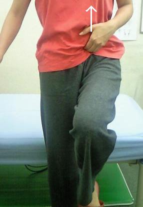 お腹の筋肉が過緊張したまま立っていると前かがみになってしまうので真っ直ぐ立つためには