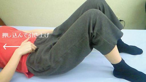その際、おへその左下にそのポイントがある場合は左膝を曲げて押し込み胸の方へ