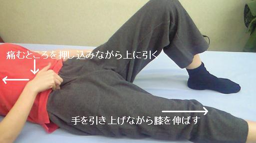 指を離さないようにしてゆっくりと足を下ろします。(皮膚が引っ張られてなお痛みますがガマンガマン)